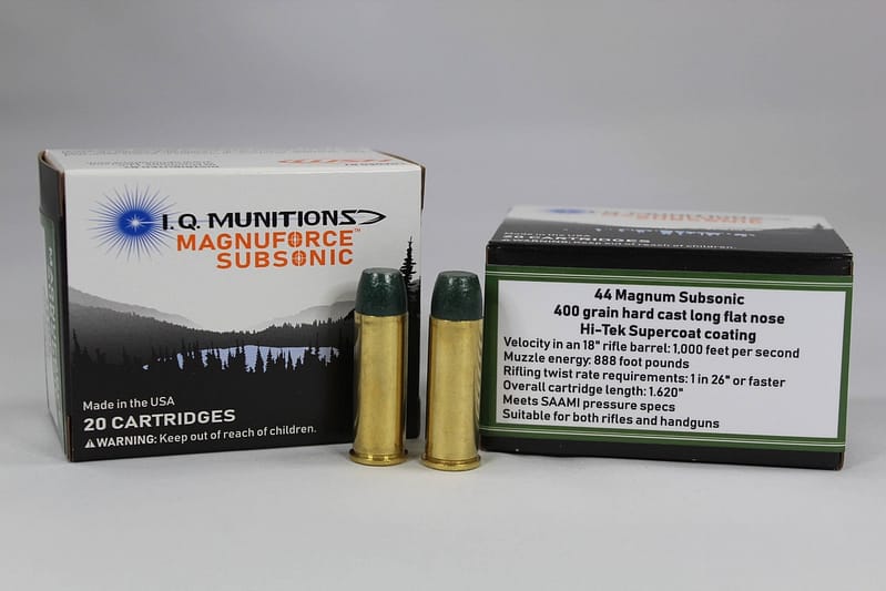 About 2 years ago I wanted to build a brush gun to hunt hogs here in Texas. I love my 308 but it was just to heavy to carry around. Thinking about this weapon I wanted it suppressed and in lever action. One of my friends said you know what would be cool ?do it in 44caliber! so a year later, my gunsmith with my input created and completed a Henry big loop SBR’ed (10.3in barrel) fashioned with a Osprey 45k can. At the time my only option was Hornady 300 gr xtp ammo which was still supersonic , so the rifle got lost in the safe. A few weeks ago I couldn’t believe my eyes when I clicked on .iqmunitions.com/product/44-magnum-magnuforce-subsonic-ammo/, I was like nooooo way. I ordered 2 boxes with pure skepticism. Once I received my order and loaded it in the rifle and pulled the trigger, I immediately knew my 44 mag was truly ready for Texas hogs. The subsonic 400 grain packs a punch with little to no recoil,(SUPER QUIET) I expected my can to be super heated but to my surprise no heat to the touch. I was able to tube load my rifle with ease. Please continue to produce these rounds!!!!!! At the time of this review I’m going to be ordering another box for a April Hog hunt and I’m leaving my 308 behind. I ready to see what this projectile will do on a Texas Hog with good shot placement. Thumbs Up to this product and I DO NOT WRITE REVIEWS BUT THIS ROUND DESERVED RAVE REVIEWS. I’ll complete another review post hunt!!!!!